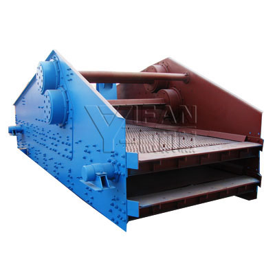 直線振動篩采用雙電機驅(qū)動,當兩臺電機做同步、反向旋轉(zhuǎn)時,其偏心塊所產(chǎn)生的激振力在平行于電機軸線的方向相互抵消,在垂直于電機軸的方向疊為一合力,因此篩機的運動軌跡為一直線。其兩電機軸相對篩面有一傾角,在激振力和物料自重力的合力作用下,物料在篩面上被拋起,跳躍式向前作直線運動,從而達到對物料進行篩選和分級的目的??捎糜诹魉€中實現(xiàn)自動化作業(yè)。具有能耗低、效率高、結(jié)構(gòu)簡單、易維修、全封閉結(jié)構(gòu)、無粉塵溢散等特點。最高篩分目數(shù)325目,可篩分出7種不同粒度的物料。