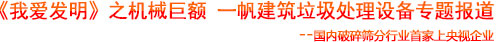 《我愛發(fā)明》欄目這次主題是以"科技創(chuàng)新"為基點(diǎn),鼓勵(lì)企業(yè)、個(gè)人已發(fā)展創(chuàng)新的理念去創(chuàng)造價(jià)值、建筑垃圾設(shè)備實(shí)現(xiàn)價(jià)值。而鄭州一帆機(jī)械設(shè)備有限公司則是國內(nèi)早期從事建筑垃圾處理的獨(dú)創(chuàng)企業(yè)之一,隨著這幾年一帆公司建筑垃圾設(shè)備的事業(yè)的輝煌發(fā)展,在國內(nèi)破碎機(jī)行業(yè)專業(yè)處理建筑垃圾設(shè)備中,一帆機(jī)械一直處于優(yōu)勢地位。