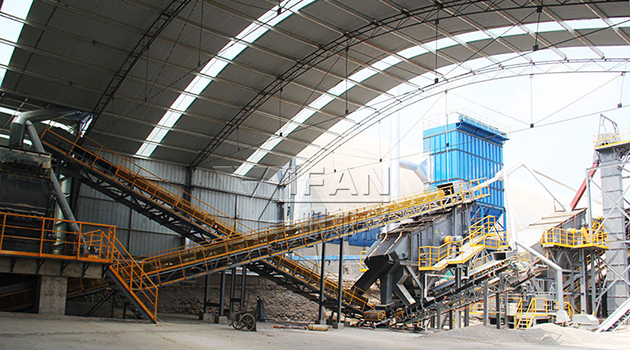 該生產(chǎn)線是鄭州一帆根據(jù)當?shù)乜蛻羯a(chǎn)需求,自主研發(fā)設計的包含前段破碎到后段制砂的精品機制砂生產(chǎn)線(砂石同出),在一個生產(chǎn)線系統(tǒng)中加工生產(chǎn)出骨料和機制砂兩種成品。其優(yōu)勢在于,大大提高石灰石物料的利用率,降低整條生產(chǎn)線的廢料量,有效利用生產(chǎn)線廢料來提高產(chǎn)值,整個砂石同出系統(tǒng),符合國家對質(zhì)量、節(jié)能及環(huán)保的要求,實現(xiàn)了真正意義的綠色生產(chǎn)。